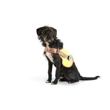 Diese fluoreszierende gelbe Leuchtdecke mit orangenem Einfassband ist standardmässig mit 2 LED-Lampen (mit fünf starken, gelben LED`s und AAA- Batterien) und 50mm Reflekt (EN20471 zertifiziert) ausgerüstet. Stufenlos verstellbare Bauch- und Brustgurte zeichnen die Kenndecke aus. Auch langhaarige Hunde sind damit rundum sichtbar. Nach Demontage der LED-Lampen kann die Decke bei 30° Grad gewaschen werden und der Reflekt entspricht auch nach 25 Waschgängen noch immer EN20471.