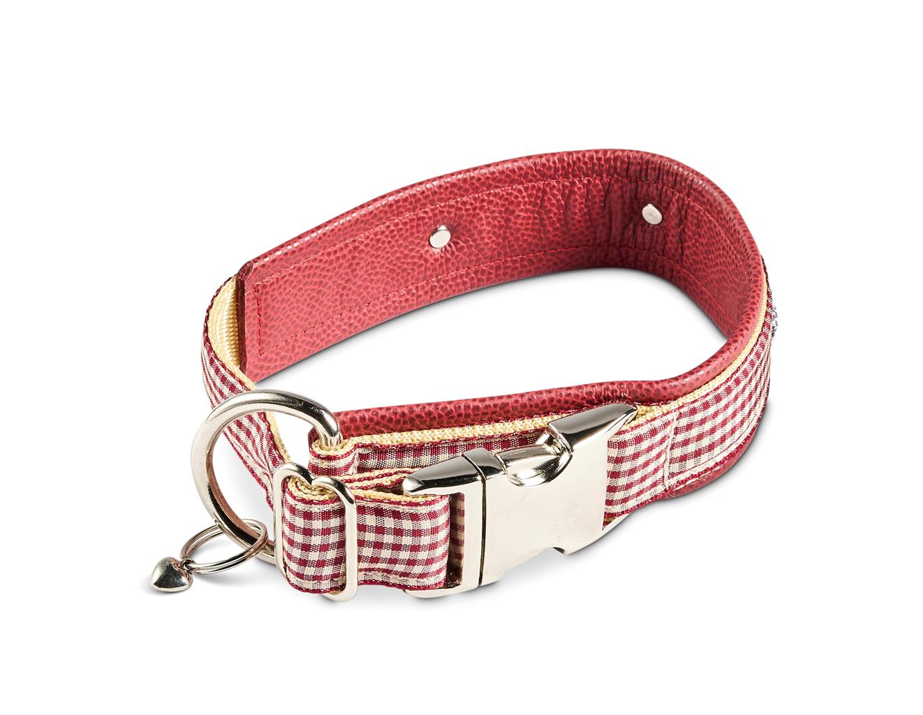 Unser verstellbares Halsband Lichtenstein bordeaux aus Nylon ist mit weichem Leder unterlegt. Dadurch kommt der Hund nicht mit dem robustem Metall-Klick-Verschluss in Berührung. Durch das Tragen wird das Leder noch anschmiegsamer.