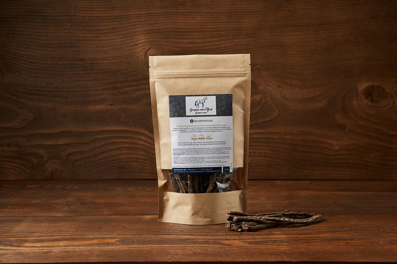 Pour ce produit, nous utilisons du cheval de pâturage comme source de protéines, incorporé dans des herbes riches en nutriments. Un délice pour tous les chiens.