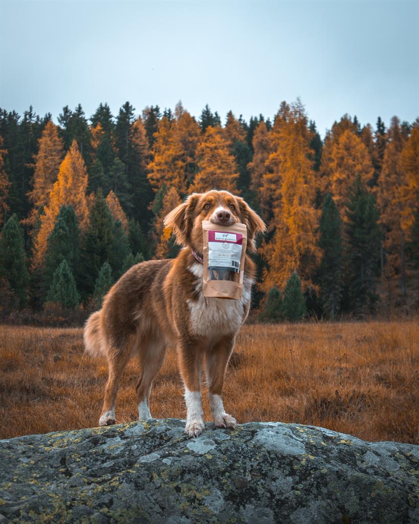 Ce produit est issu de notre propre production et contient de la viande de bœuf de pâturage suisse fraîche. Un délice pour tous les chiens.